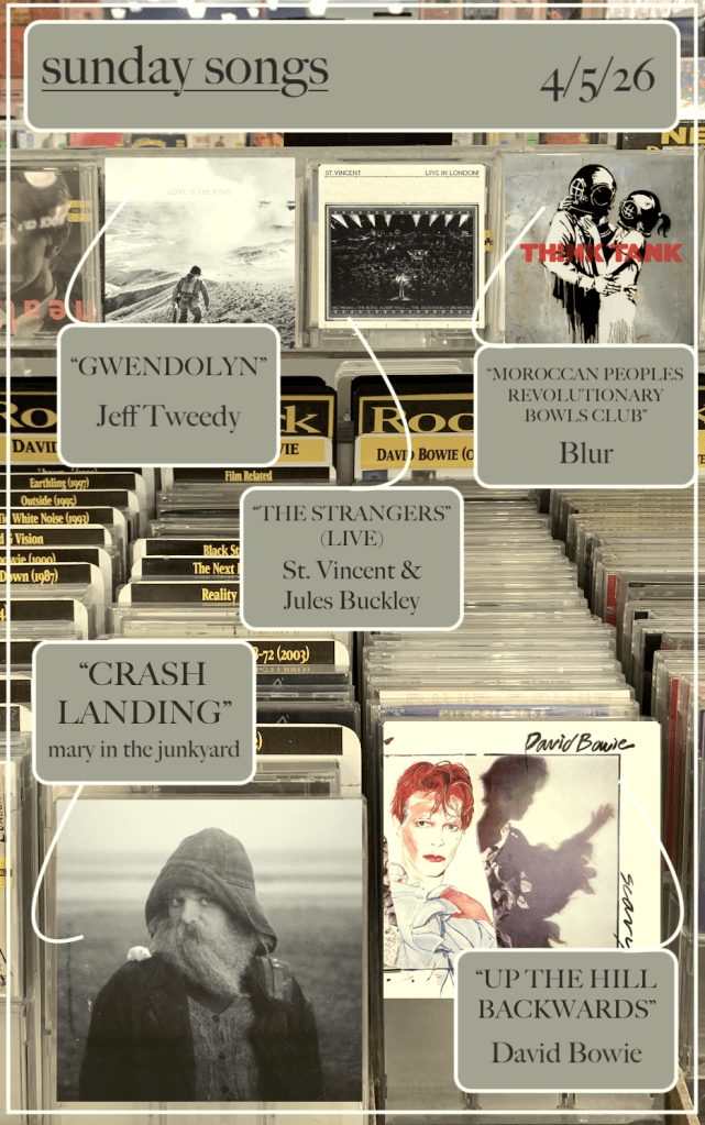 This week: living vicariously through a digital album because SOMEBODY won’t tour in my area, making something out of nothing, and the inevitability of mildly cursed Jeff Tweedy music videos.