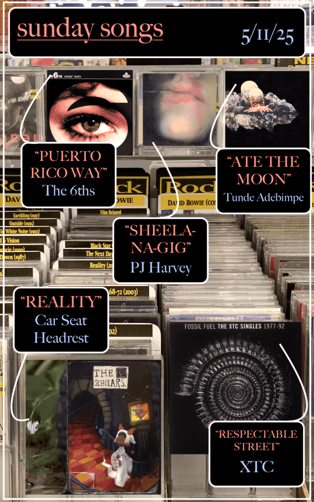 It is a sort of death of the author situation; “Sheela-Na-Gig” hasn’t necessarily been lauded as some feminist anthem (and Harvey said in the same interview above that she didn’t want to be “lumped in” with more forwardly feminist bands), but even a quick glance at any reviews of the song shows that’s how many people tend to take it. In the context of PJ Harvey’s other songs, which are incontestably about misogyny and her struggles as a woman in a male-dominated industry (and world) (see: “50ft Queenie”), “Sheela-Na-Gig” seems to fit into that puzzle. I don’t want to wave that over people’s heads like they interpreted it incorrectly, either—it’s not like I got the aspect on my first listen. (I credit that to Trash Theory.) Personally, I didn’t think all of it was necessarily funny at first, although being as Gen Z as I am, I’ve only heard the phrase “childbearing hips” used sarcastically, so I took that as such. After going through literary theory, I’ve definitely been on the fence-sitting side as far as whether or not to go full death-of-the-author on any given song; the reader’s interpretation does shape the work, but I find it foolish to take it without considering the author’s intent. With “Sheela-Na-Gig,” I think there’s a lot that can be empowering, but what may be most empowering to me is finding the humor in being a woman. The semi-autobiographical narrator swings and misses repeatedly, but doesn’t let any judgement get under her skin. All of the ferocious power chords signal that she’s ready to dust herself off and try again. In the present moment, the narrator hasn’t yet learned, but the fact that PJ Harvey has looked back and learned herself seems more the point to me: having the self-awareness to feel bad for your past self, but be able to laugh at their mistakes. There’s power in being able to look back and laugh instead of wallow in sorrow—when you’re a woman, it’s all you can do sometimes. It may not necessarily be feminist, but it sure is a part of life.