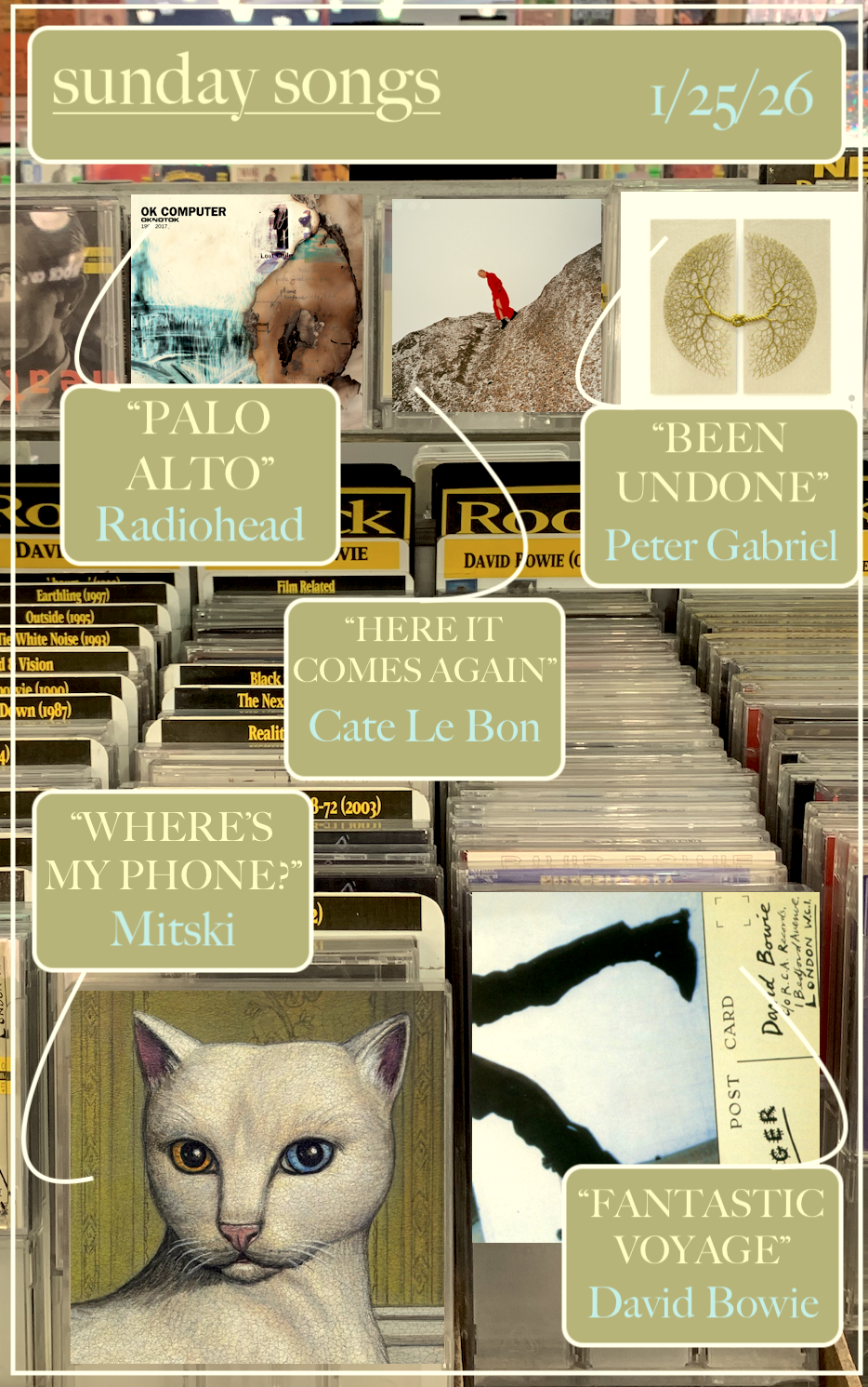 I regret to inform you that I’ve been listening to way more Cate Le Bon again, but I can’t help it that it faintly fits the vibe of my honors thesis. Michelangelo Dying, Pompeii, and Reward all got revisited last week, and you will be hearing about it. This is, once again, a threat.