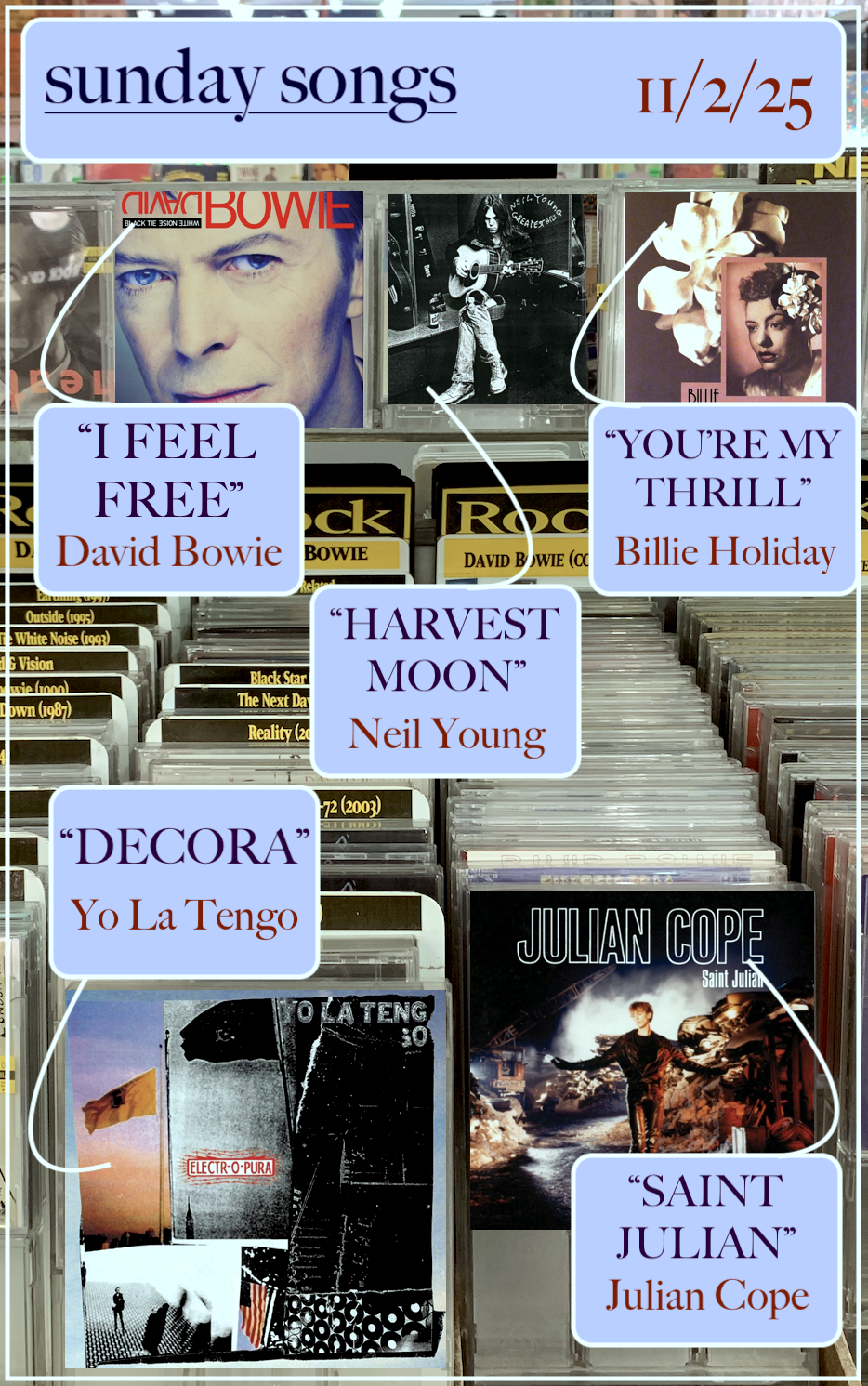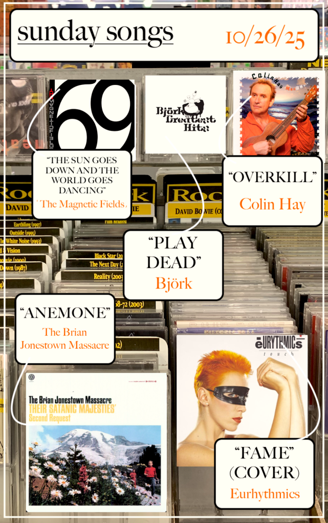 How perfect it was that I remembered “A Night Like This” right after Halloween. Frankly, every season is The Cure season if you can get with the drama 24/7, but you can’t deny that it’s the ideal fall or winter soundtrack. This track in particular represents the peak of what I love about The Cure—oh my god, the drama. I mean that without any irony, because there’s such an art to throwing yourself into it fully without looking insincere. You have to make a bit of a fool of yourself to sell it, but Robert Smith never looked the part to me—it was so intentional, and so clearly from a place of love. Lyrically, that’s what sells the glut of the song for me, but musically, what pulled it back from my memory was that guitar tone—so incredibly rich and full, and yet cavernous in a way that it couldn’t be considered gothwithout. It’s the closest I feel a guitar can sound to a cello without Jonny Greenwooding it with an actual cello—there’s a depth to the sound that feels like it could only come from an instrument with a hollow body. It’s all an undeniable spectacle of romantic (capital R Romantic and the usual sense) passion.