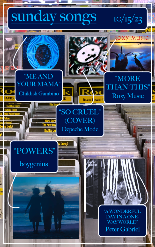 How perfect it was that I remembered “A Night Like This” right after Halloween. Frankly, every season is The Cure season if you can get with the drama 24/7, but you can’t deny that it’s the ideal fall or winter soundtrack. This track in particular represents the peak of what I love about The Cure—oh my god, the drama. I mean that without any irony, because there’s such an art to throwing yourself into it fully without looking insincere. You have to make a bit of a fool of yourself to sell it, but Robert Smith never looked the part to me—it was so intentional, and so clearly from a place of love. Lyrically, that’s what sells the glut of the song for me, but musically, what pulled it back from my memory was that guitar tone—so incredibly rich and full, and yet cavernous in a way that it couldn’t be considered goth without. It’s the closest I feel a guitar can sound to a cello without Jonny Greenwooding it with an actual cello—there’s a depth to the sound that feels like it could only come from an instrument with a hollow body. It’s all an undeniable spectacle of romantic (capital R Romantic and the usual sense) passion.